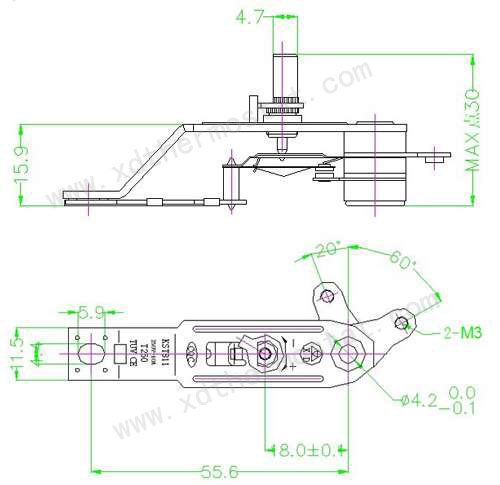 1、机械角度:300±5°