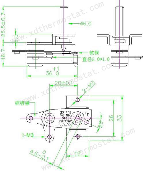 型号:KST820-16851、规格:250VAC 16A2、工作角度:310±5℃3、工作温度:125±6℃4、开机角度:70±10℃(室温25℃)5、耐压:2000V /1S 击穿电流0.5mA